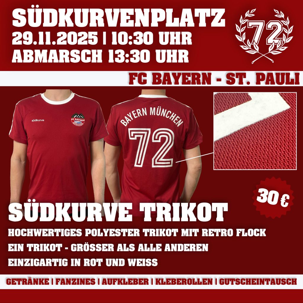 Im Umlauf eben jener Südkurve ereignete sich nun ein Vorfall, der die Frage aufwirft, wie ernst es den Verantwortlichen des FC Bayern mit ihrer Positionierung gegen Rassismus ist. Vor dem Heimspiel gegen Borussia Dortmund im April 2025 hielt sich dort eine Person auf, die ihre rassistische Gesinnung durch Fankleidung der Band „Deutsch, Stolz, Treue“ freimütig zur Schau stellte. Ohne dass sich Ordnungsdienst oder Polizei daran störten, konnte die Person Merchandise einer Band tragen, die den Holocaust leugnet und den Nationalsozialismus verherrlicht.